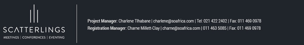 If you have any questions, or need any additional information, please do not hesitate to contact Charne Millett-Clay on 011 463 5085 / charne@soafrica.com